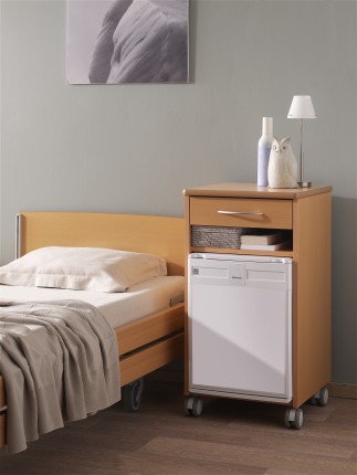 Der Quadra ist ein kompakter Nachttisch mit einem zeitgenössichen Design. Der Nachttisch kann auch mit einem Livia Ausziehtablett ausgestattet werden (Option).